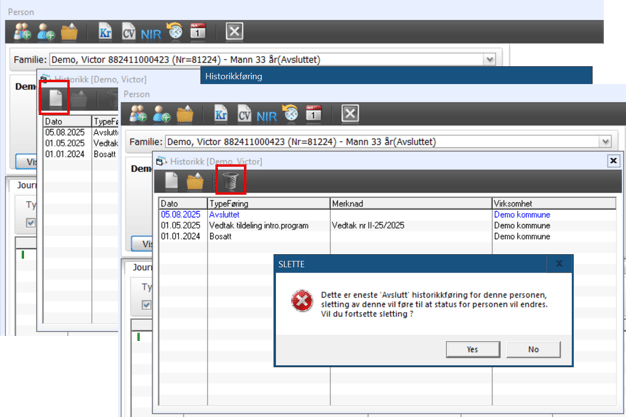 2. Fjerne historikkføring som er grunnlag for passivisering/avslutning (dette gjør vi når det var feil at deltaker var passivisert/avsluttet.