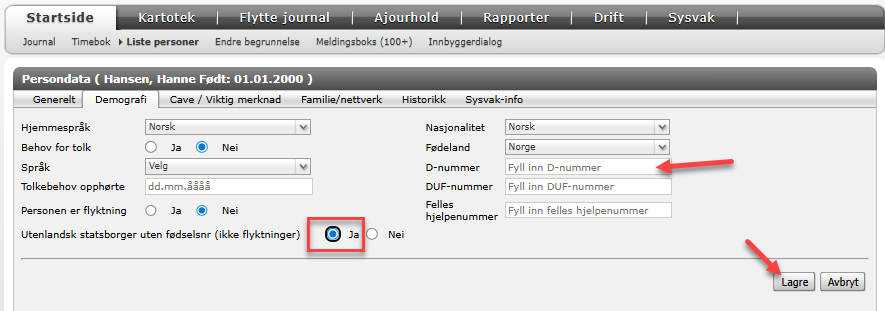 Gå inn på Personinformasjon under Demografi;