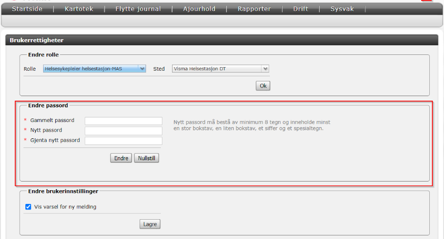 Valget Endre passord gir deg mulighet for å endre passord når du selv ønsker det.