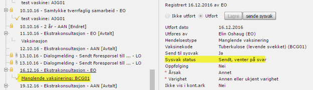 Manglende vaksinering skal også registreres og sendes til Sysvak. Dersom det er behov for å slette og registrere vaksineoppgaven på nytt, må oppgaven først ha fått Sysvak-statusen «Oppdatert».