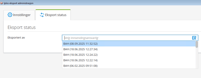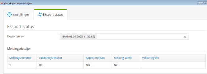 Sjekk status på innsending via Ajourhold – System – Master – fanen for Integrasjon og velg Iplos Eksport