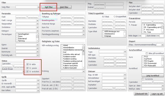 Filtre er personlig i Flyktning og Voksenopplæring og må lages for hver bruker/ansatt. Noen filtre er lure å ha da man bruker disse oftere..