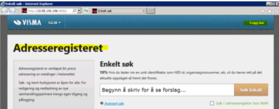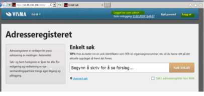 Etter innlogging så kommer du inn i vAdr (Visma adresseregister)