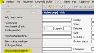 Velg "Fil" – "Visma adresseregister" via Brukermodulen
