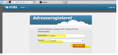 Deretter åpnes adresseregisteret, hvor du kan logge inn.