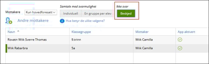 - På høyre side, øverst, klikk på 'Beskjed' slik at knappen blir grønn