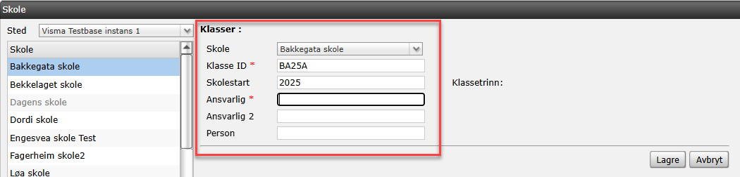 Skolestart - Skriv inn året elevene starter i første klasse – dette styrer automatisk oppdatering av klassetrinn hvert år.