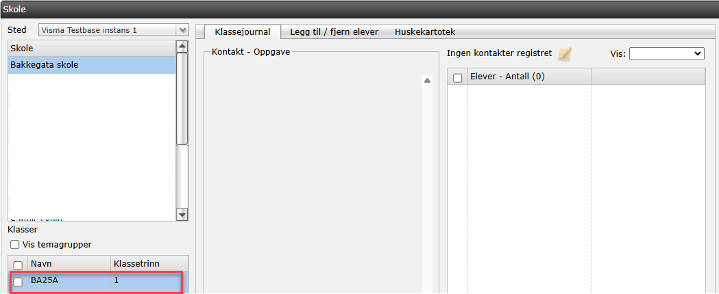 Klassetrinnet oppdateres automatisk hvert år den 1. august, slik at informasjonen samsvarer med skolestart. Klassejournalen viser oversikt over alle kontakter som er gjennomført i klassen, mens elevlisten og elevantallet oppdateres i takt med at nye elever knyttes til klassen.