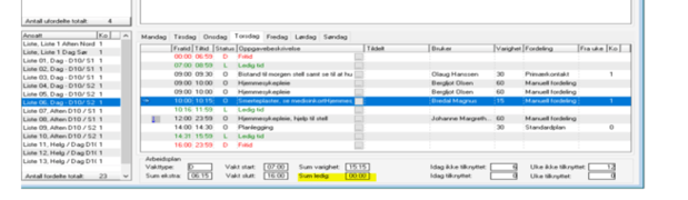 Sjekk også den aktuelle arbeidslisten oppgaven er tilknyttet: er det tilstrekkelig med tilgjengelig tid i forhold til oppgavens varighet? Vær oppmerksom på at selv om det fremstår som ledig tid på listen, vil ikke oppgaver med lengre varighet enn tilgjengelig kapasitet bli fordelt.