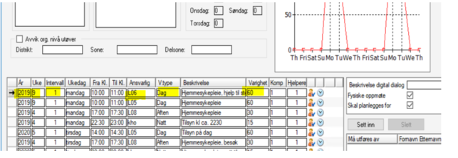 Sjekk at startår/uke, ukedag, ansvarlig(e), vakttype og varighet stemmer overens med den aktuelle uken som det planlegges for i ukeplanen eller arbeidslisten.