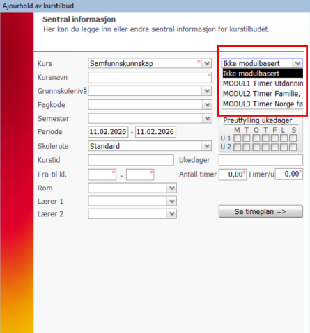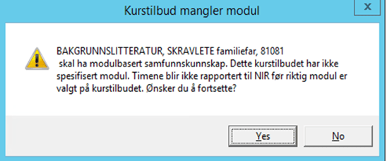 - Hvis ja: Timer oppsummeres og rapporteres delt på hver modul basert på hvilken modul som er valgt på kurstilbudet