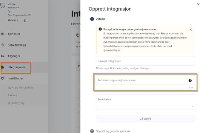 Integrasjonen skal knyttes opp til Visma Enterprise sitt organisasjonsnummer siden det er Visma's sertifikat som benyttes: