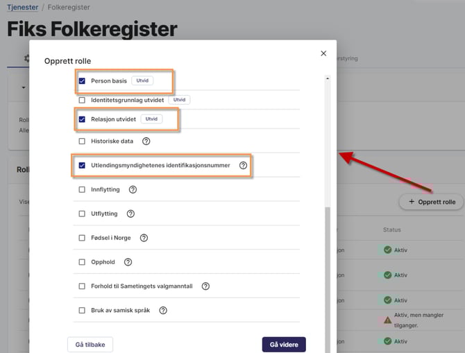 Rollen må minst inneholde følgende opplysninger under “Opplysninger som rollen kan hente ut”