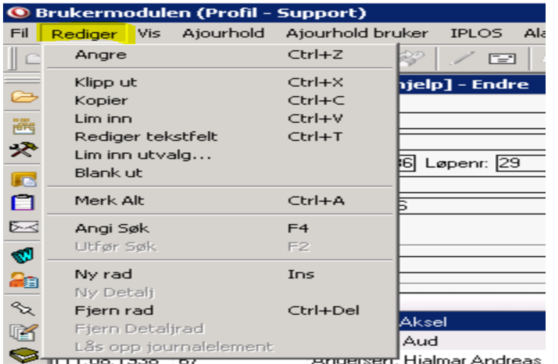 Under Rediger i menyvalget får man en oversikt over disse valgene: