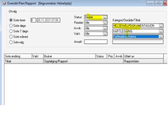 Rapporter vises ikke i oversikt plan og rapport