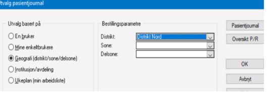 Du kan også kontrollere utvalgene som er gjort under Fag – utvalg pasientjournal.