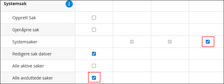 - Under 'Systemsak' gi "Full tilgang" til feltet 'Systemsaker'