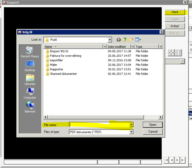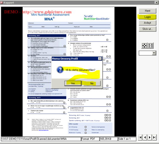Hvis du ønsker å slette dokumentet fra disken, svarer du «Ja». Dokumentet hentes da inn i Pasientjournalen, og rapporten behandles videre på ordinær måte i EPJ.