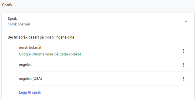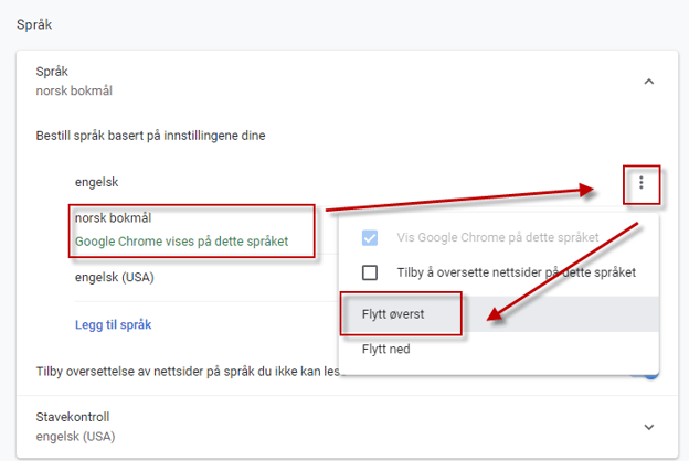 Marker «norsk», klikk på de tre prikkene, og velg «Flytt øverst».