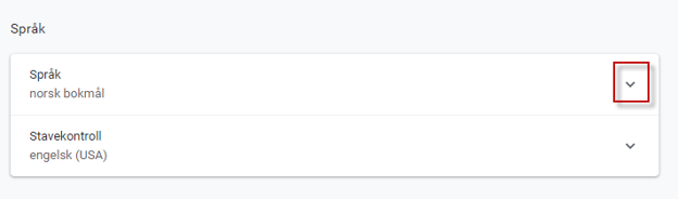 Hvis knapper og ledetekster i vADR vises på engelsk, skyldes dette vanligvis at nettleserens språkinnstillinger ikke er satt til norsk.