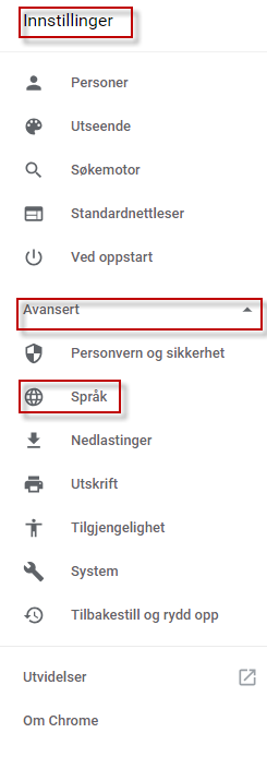 Lukk innstillingene, og oppdater nettsiden med F5. Nå skal teksten vises på norsk.